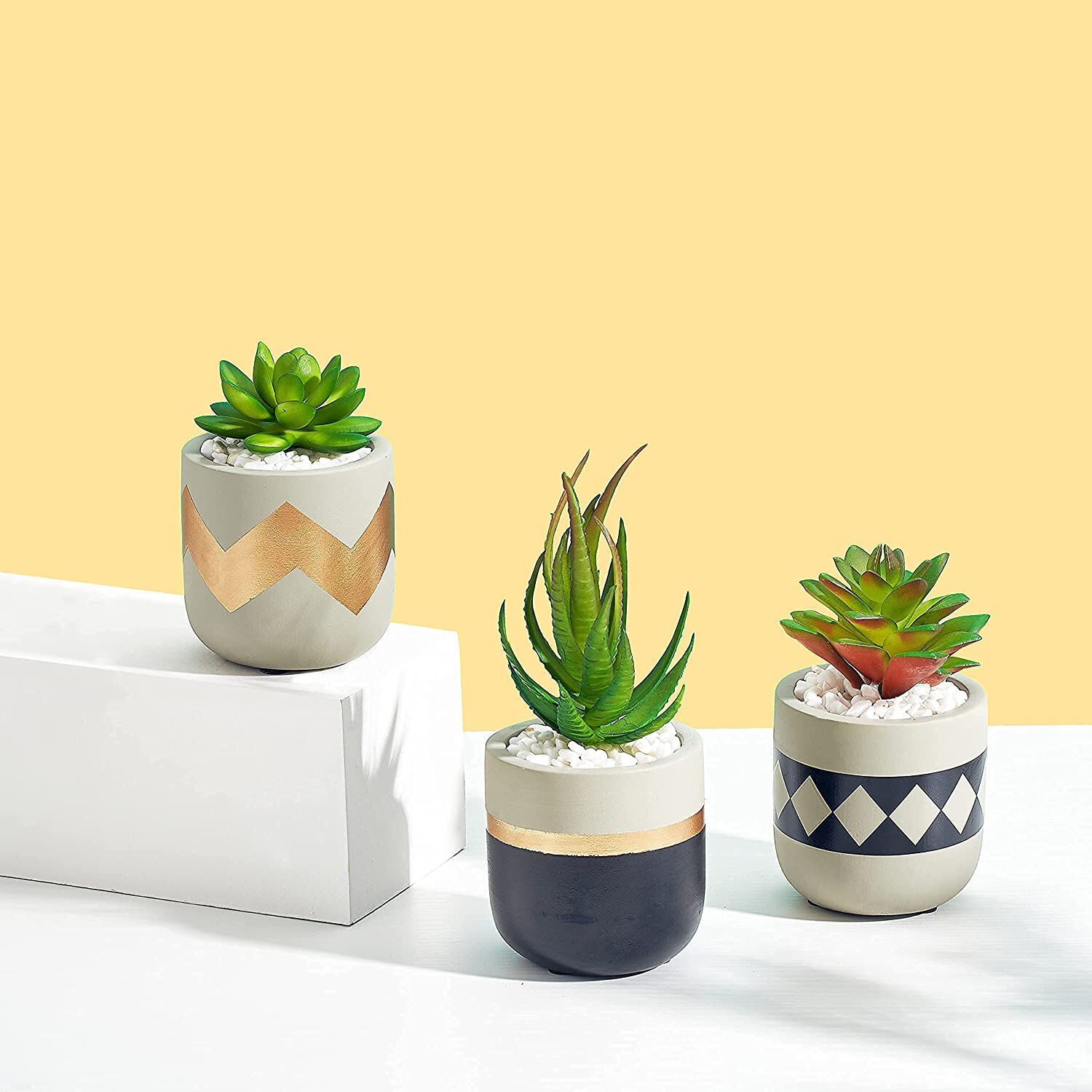 Set Of 3 Artificial Succulent Plants In Decorative Ceramic Pots 7260865 Tjc